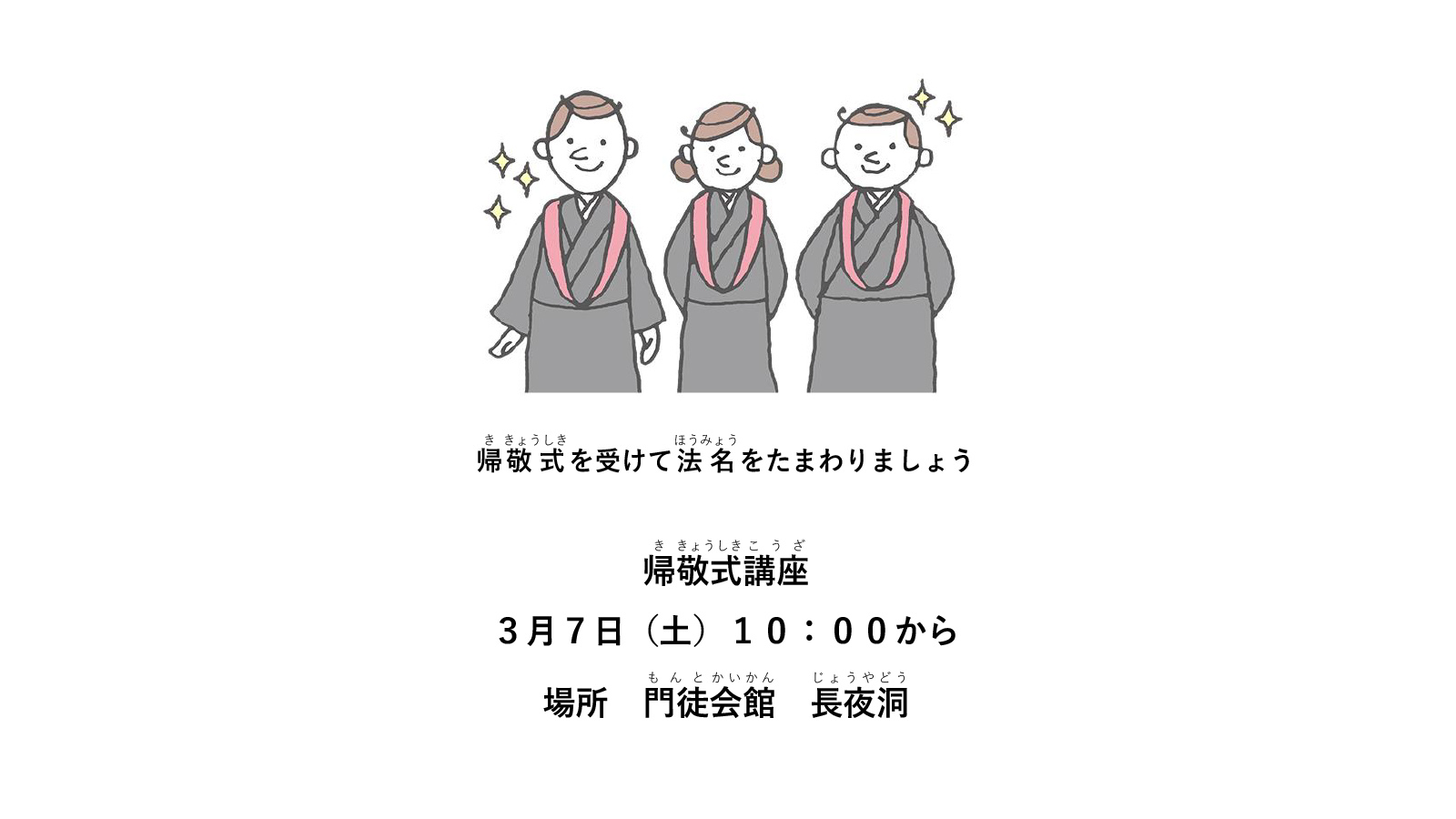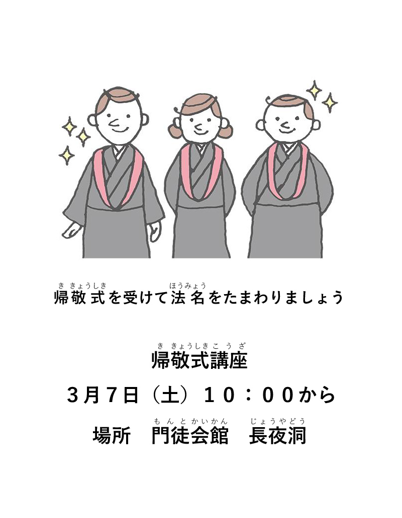 3月7日(土)10:00から帰敬式を受けて法名をたまわりましょう。