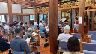 雨を心配しておりましたが、一日天気がくずれることなく、沢山の方のお支えの中、納骨堂法要が勤修されました。参拝してくださった皆様とお勤め・お茶・仏法聴聞の時間をいただきました。楠理見さん(愛知県蒲郡市専覚寺住職)が法話をしてくださいました。人間について考える大切な機縁であったと感じています。