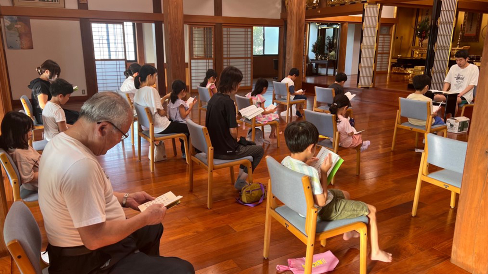 夏のお勤め練習 行事報告 行事報告 2023.09.292023.08.31 今年も夏休みのお勤め練習をしました。 朝早くからみんなでがんばりました。 ゲーム大会も盛り上がりました! お寺にいろいろな世代の方が集まるのはうれしいことです。