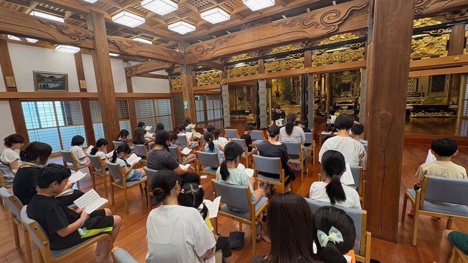 夏休みお勤め練習を開催しました。 行事報告 2025.09.09 毎年恒例の夏休みお勤め練習を行いました。 大きな声で「ナムアミダブツ」と称えてから練習は始まります。 今年初めて来てくれた方、毎年来てくれている方、皆で一緒に仏様の前で練習を頑張りました。 毎日出すなぞなぞを一生懸命考えました。ゲームも行いました。 今年も子供さん・親御さんと一緒にお勤め練習が出来て嬉しく思います。
